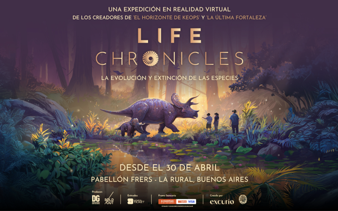 Luego de su presentación en el Muséum national d’Histoire naturelle de París“Life Chronicles” - La evolución y extinción de las especies, se incorpora como nuevo contenido —que incluye actualmente “El Horizonte de Keops” y “La Última Fortaleza”— al Pabellón Frers de La Rural a partir del próximo 30 de abril. Las tres experiencias convivirán de manera simultánea.